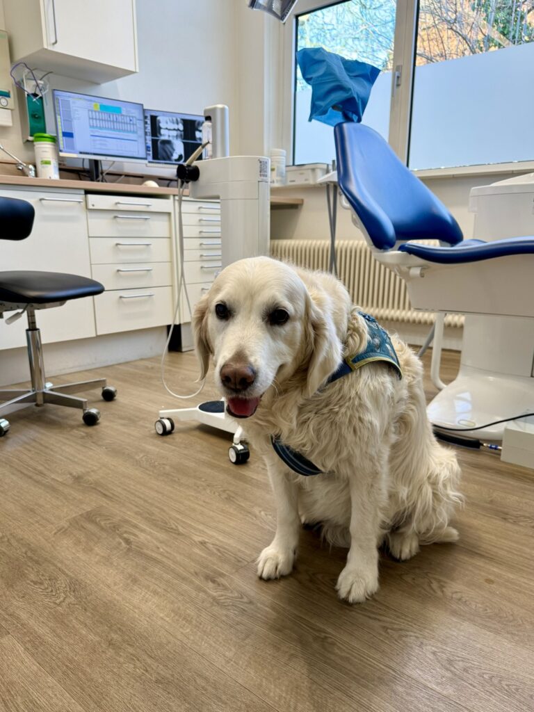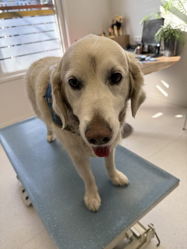 Ik kon weer weg met wat medicijnen. Het ging een paar dagen beter. Daarna weer niet, waardoor we samen bij de huisarts belandden. Een groot deel van het gesprek ging over Plouf. Er zijn in Nederland maar 2000 gecertificeerde hulphonden, dus op de meeste plekken waar we komen, is het verschijnsel nieuw. Het onderhoud met de dokter was warm en Plouf was helemaal welkom. Er werden medicijnen voorgeschreven en wat onderzoekjes ingepland, en we konden weer naar huis.